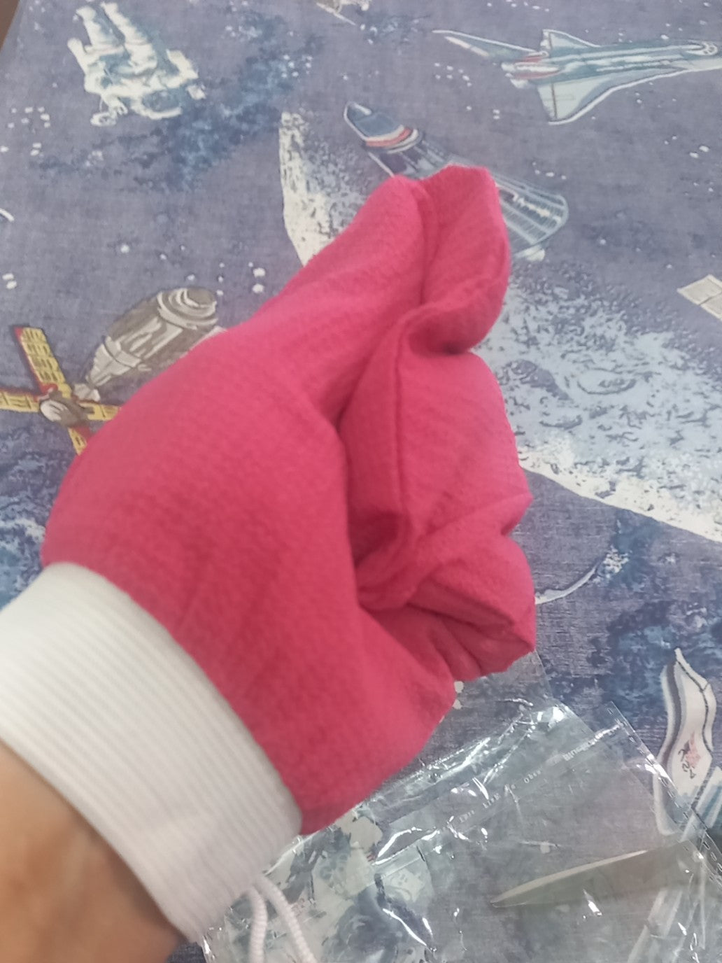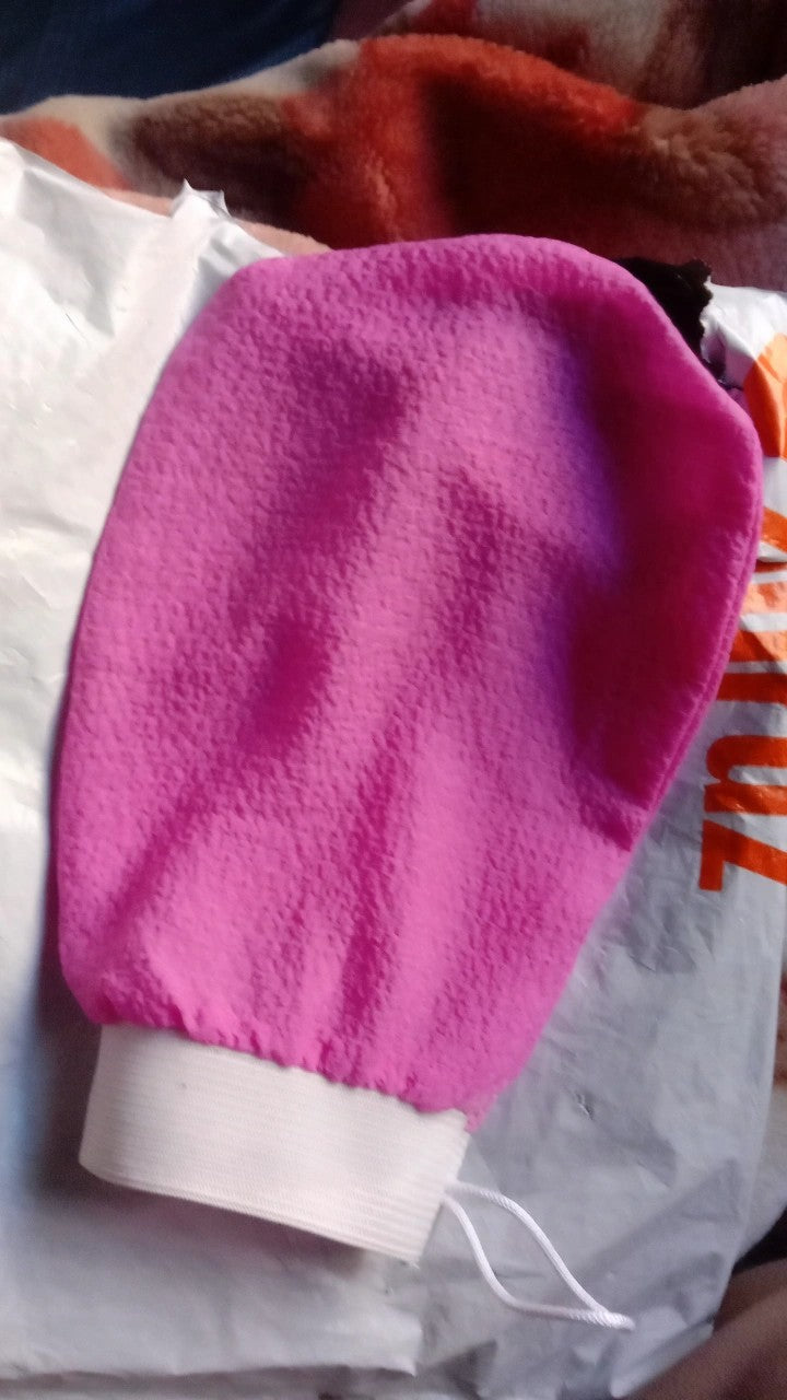 it's like Georgette stuff scrubby texture elastic rib easy to fit in any size of hand. recommended 👌